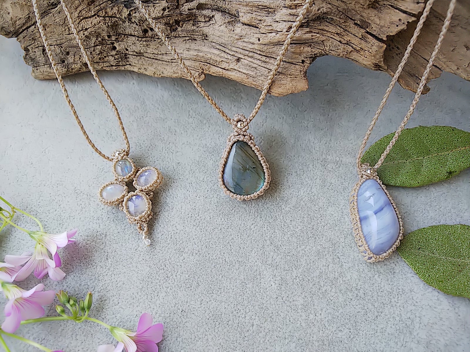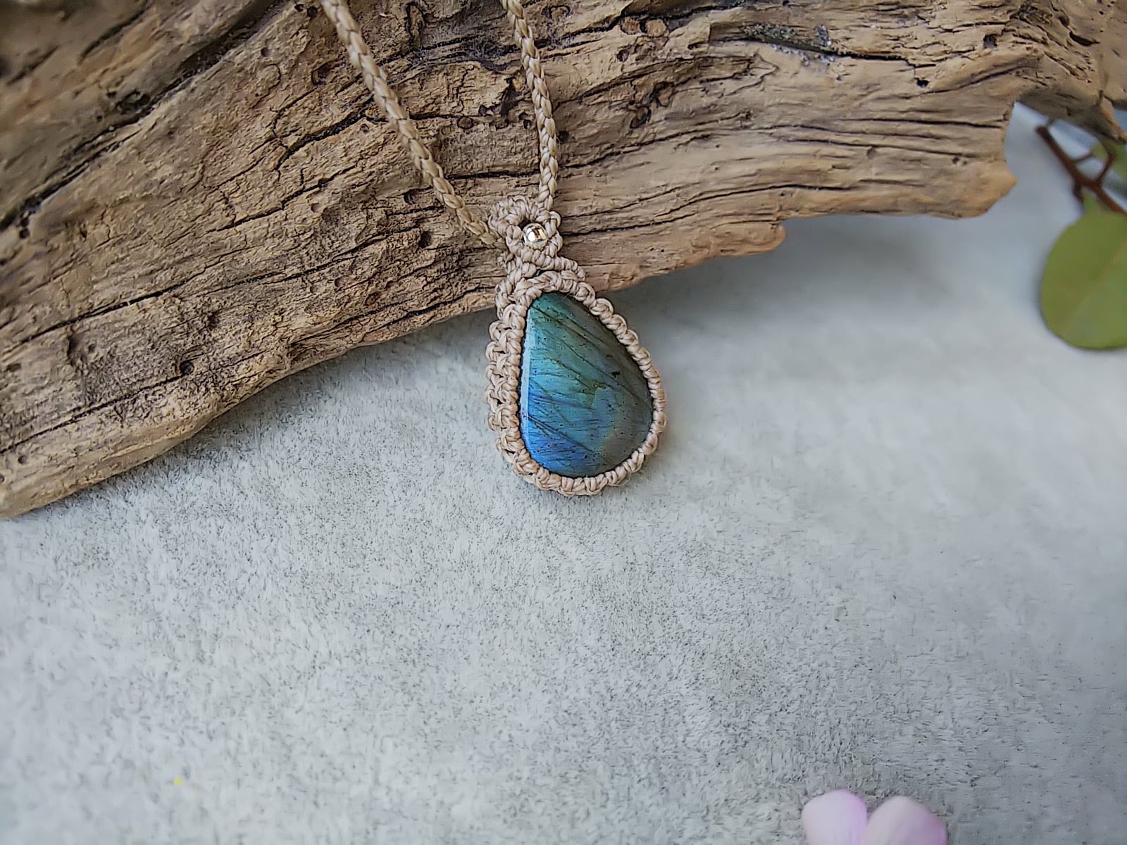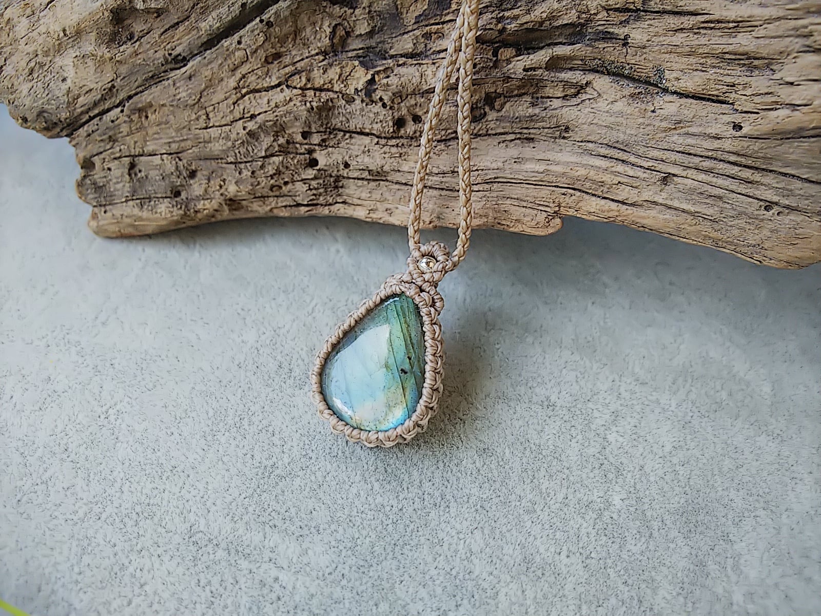しずく型ラブラドライト シンプルマクラメネックレス