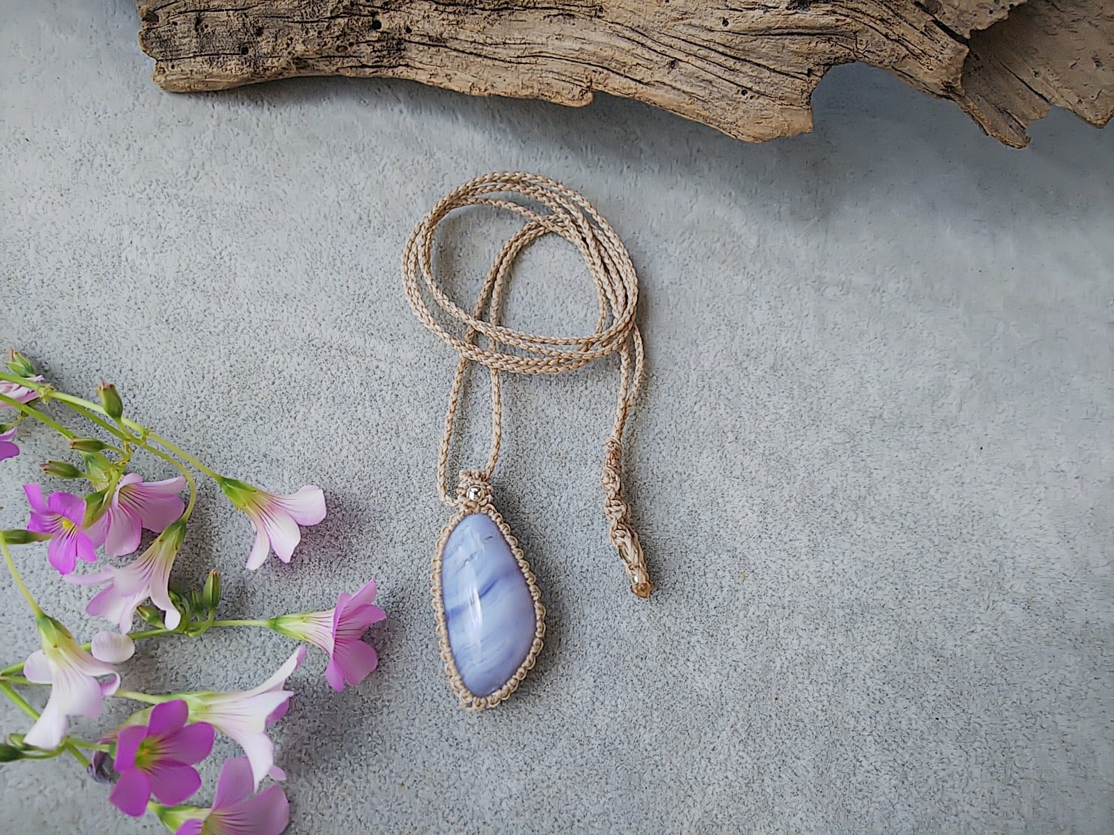 【対人関係をサポートする♪】ブルーレースアゲートマクラメネックレス