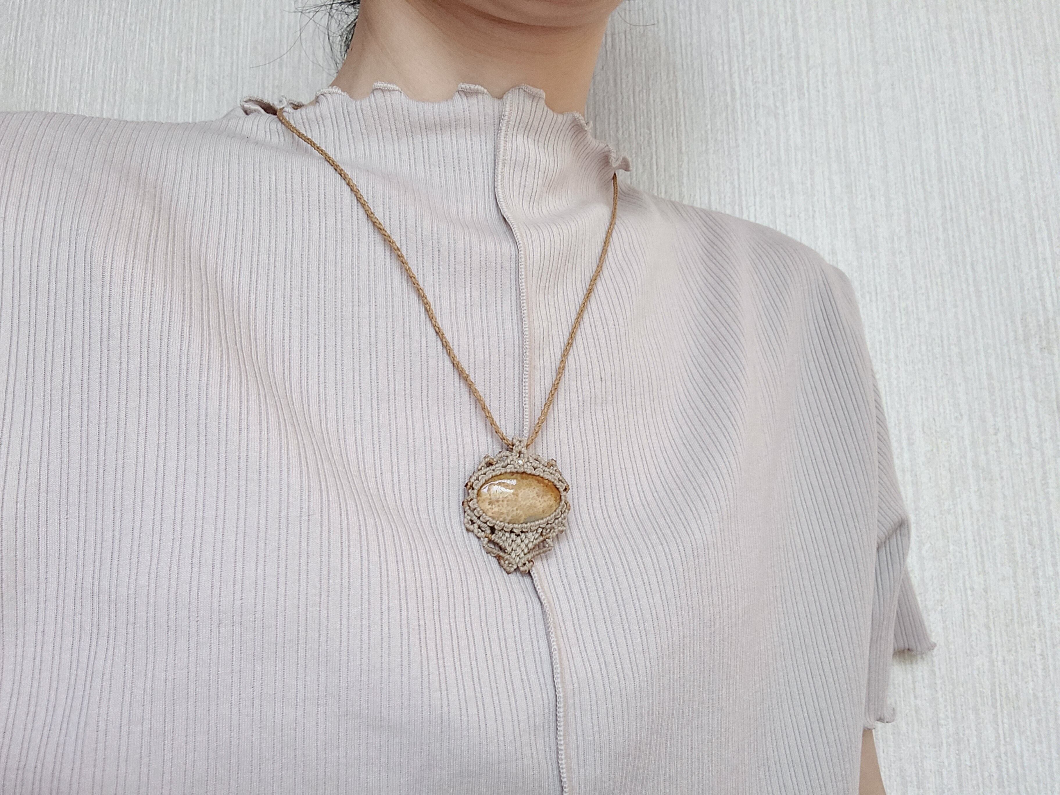 【Daisy】明るい未来へ導く フォシルコーラルマクラメネックレス